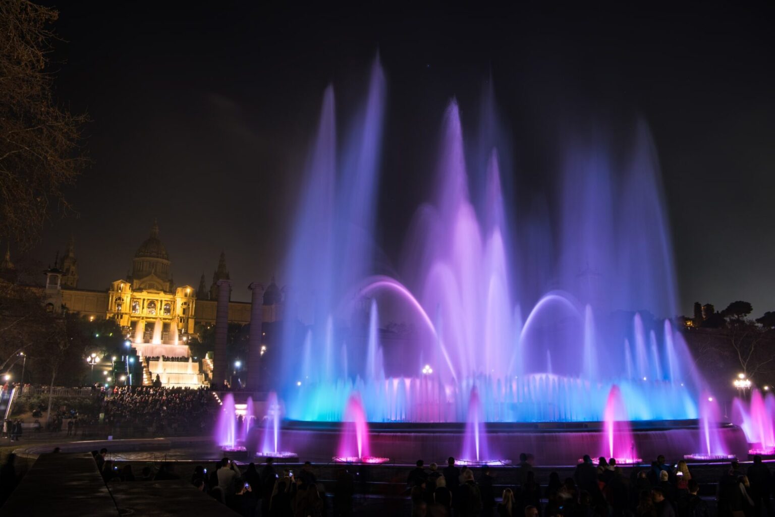 夜は、マジック・ファウンテンの光と音のショーを楽しみましょう。この壮大なショーは、バルセロナの夜を彩る最高のエンターテイメントです。