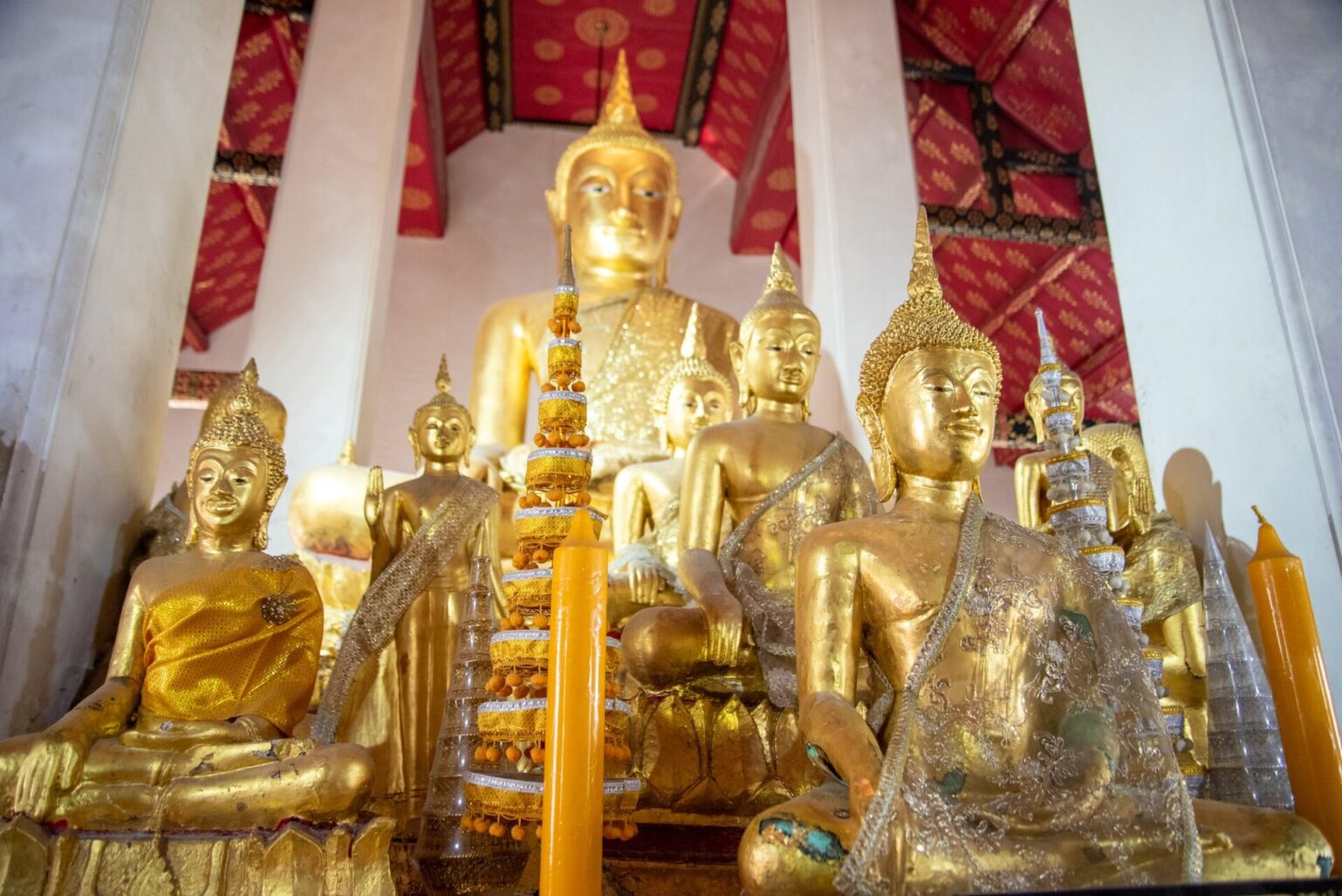 本堂の周囲には、さまざまな仏像が安置されており、それぞれに異なる表情やポーズがあります。これらの仏像をじっくりと眺めることで、タイ仏教の深い精神性に触れることができるでしょう。
