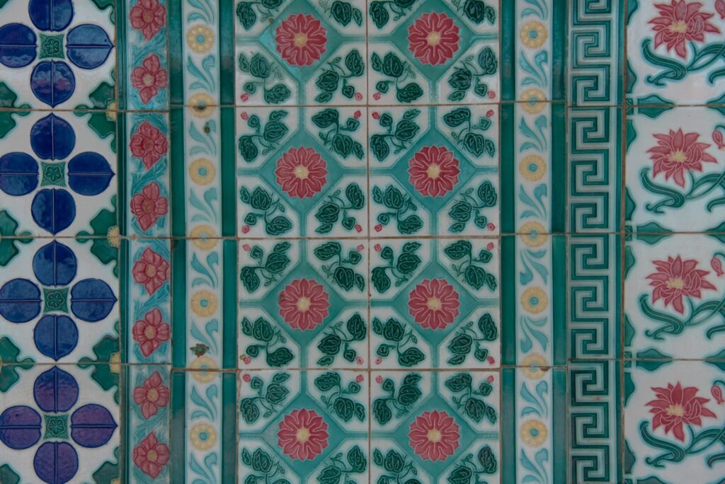 寺院内部は、様々な種類のタイルで装飾されており、これらのタイルは約100年前の大正時代に日本で流行した「エンボススタイル」のものであることが特徴です。壁や床のタイルは、若い女性に特に人気で、この壁を背景に写真を撮る方が増えています。