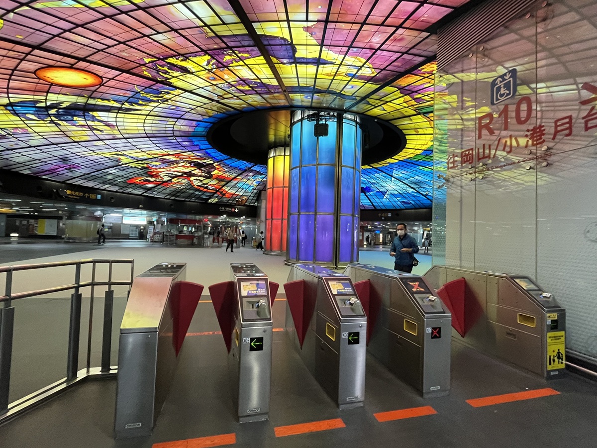 地下鉄2路線が交差する美麗島駅は、数多くのホテルやレストランなどが集まる高雄の中心地。高雄で最も有名な夜市「六合夜市」もこの駅から直ぐの場所にあります。高雄滞在中に何度も利用することになるこの美麗島駅は、改札を出たところに世界最大のステンドグラスアートとされ、4,500枚のステンドグラスから成る「光のドーム」があります。その美しさから、かつて「世界で最も美しい地下鉄駅」の2位に選出されました。1日に数回、光のショー(無料)が開催されますので、時間帯があえば是非足を運んでみてください!