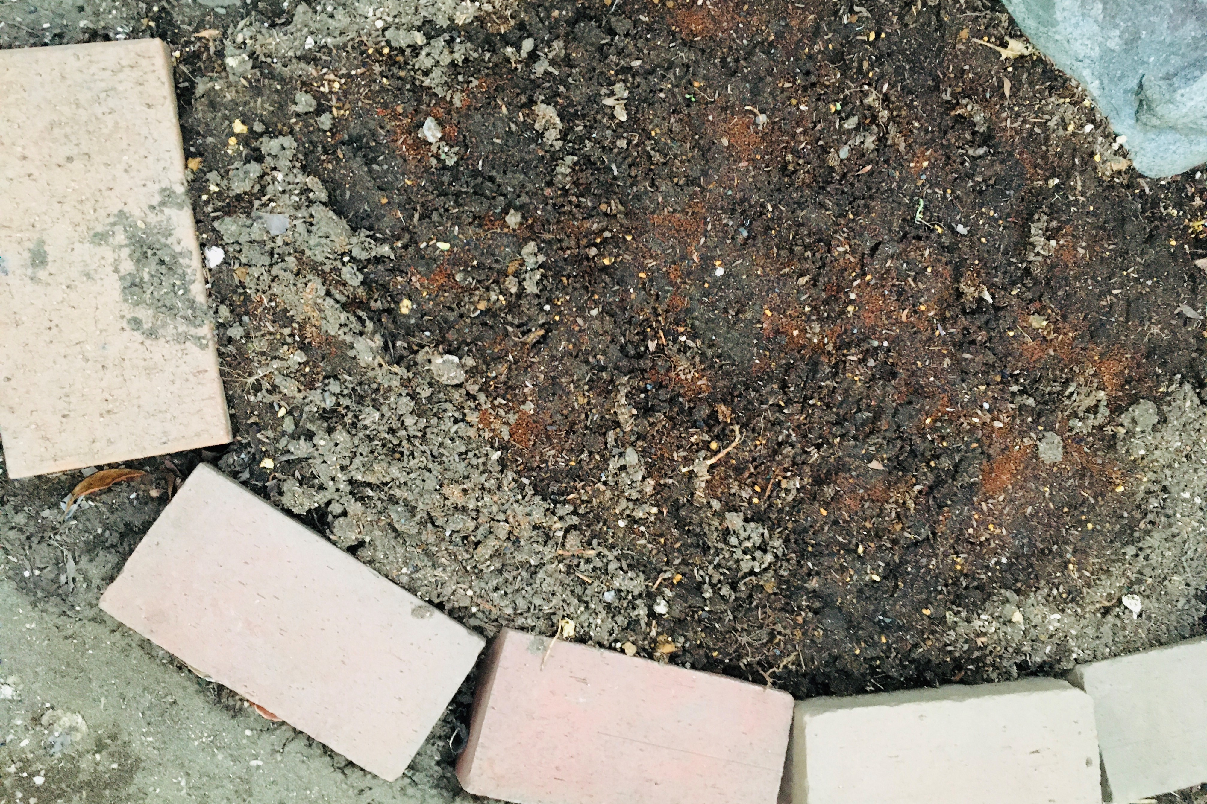 ちょうど家にレンガがいくつかあったので、レンガで囲いました。