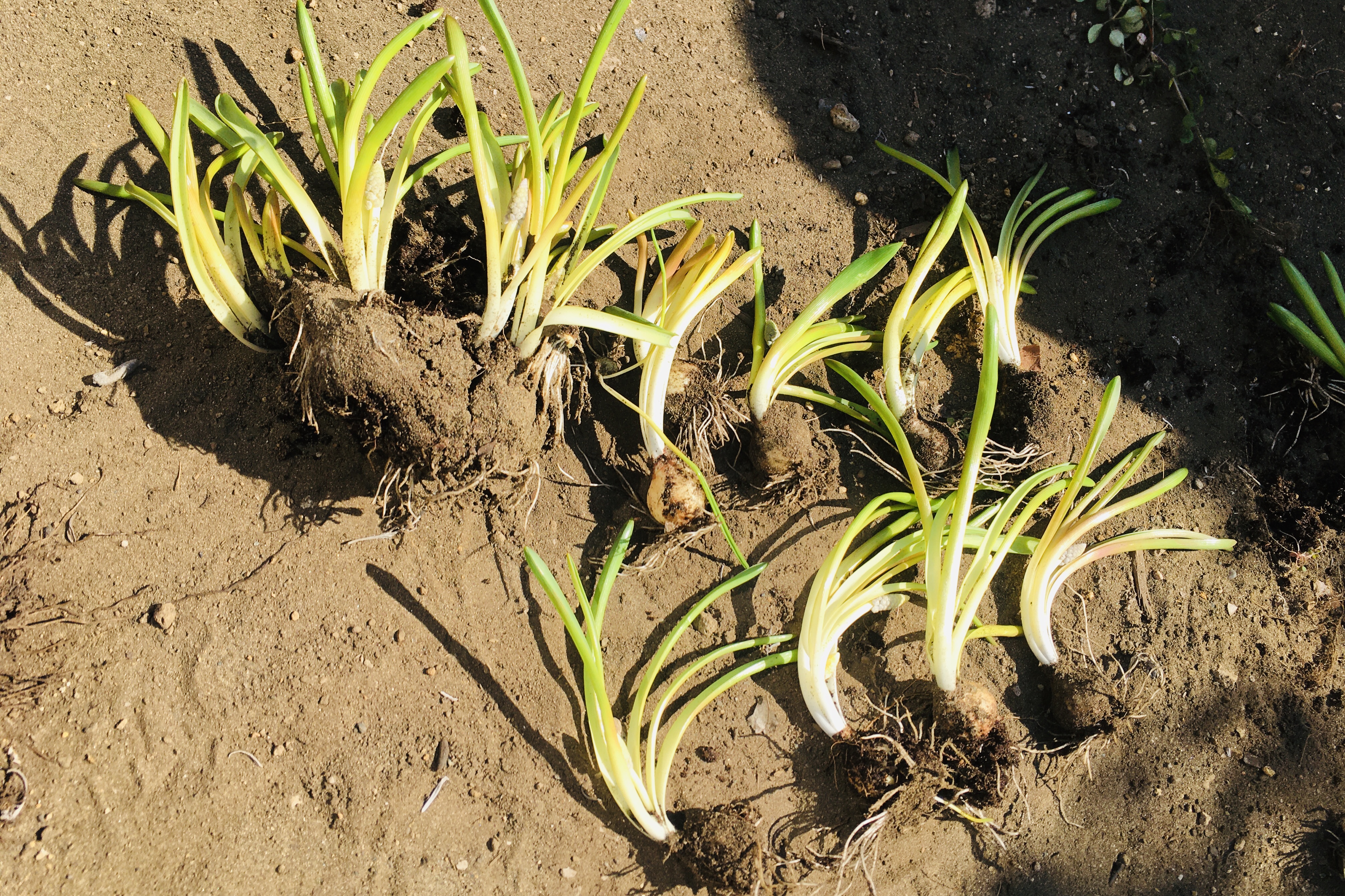 しっかりした大きめの球根から小さめのものまで、サイズ感はさまざま。