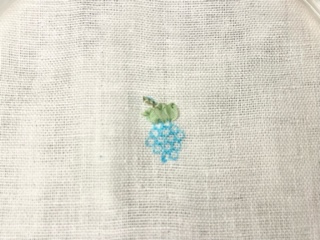 ラズベリーの実の刺繍が完成しました!とっても愛らしくできましたね。