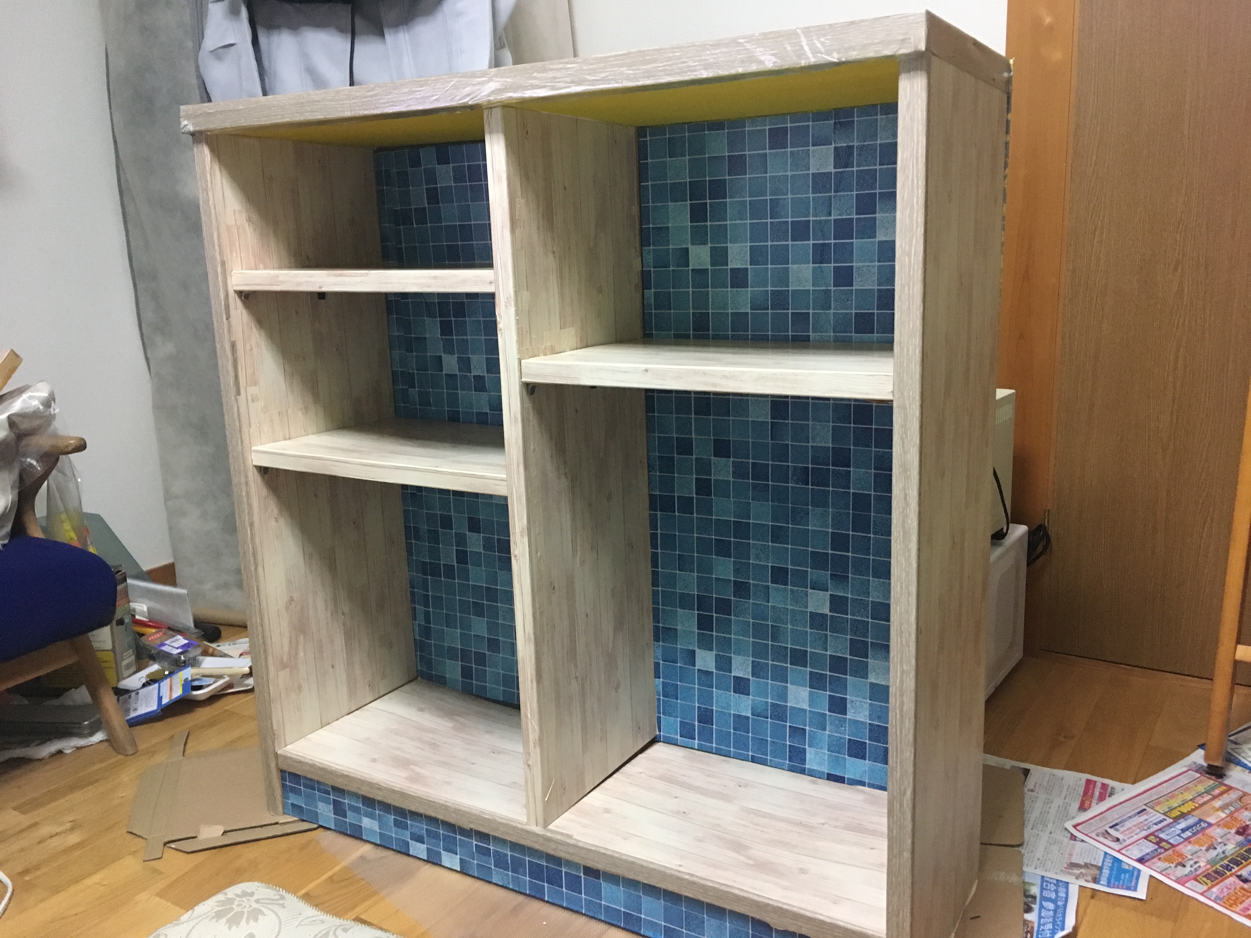 好きなリメイクシートをカラーボックスに貼れば、自分オリジナルの棚が完成します。