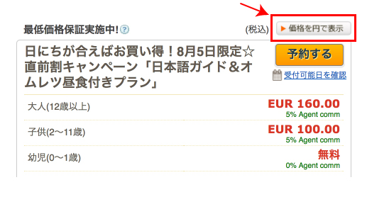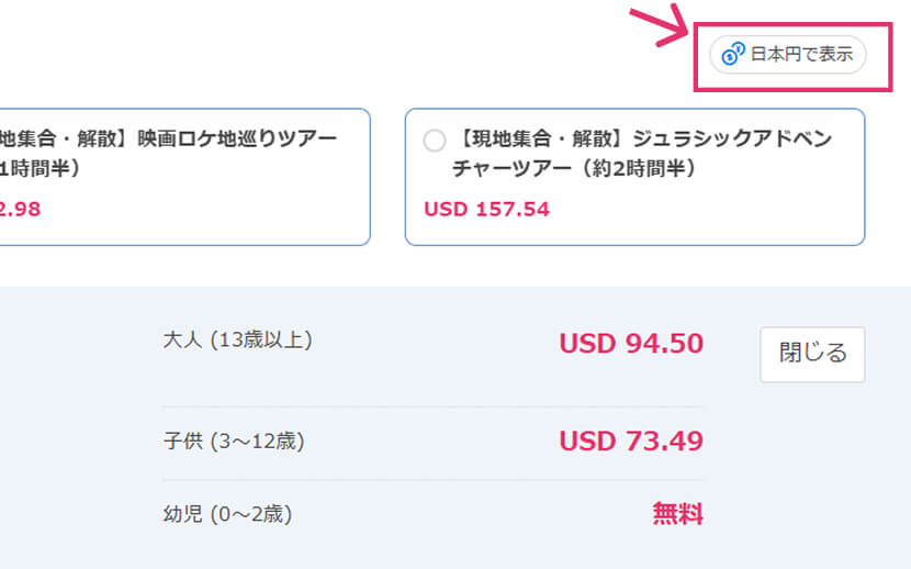「価格を円で表示」をクリックすると、日本円に換算した金額にて表示されます。